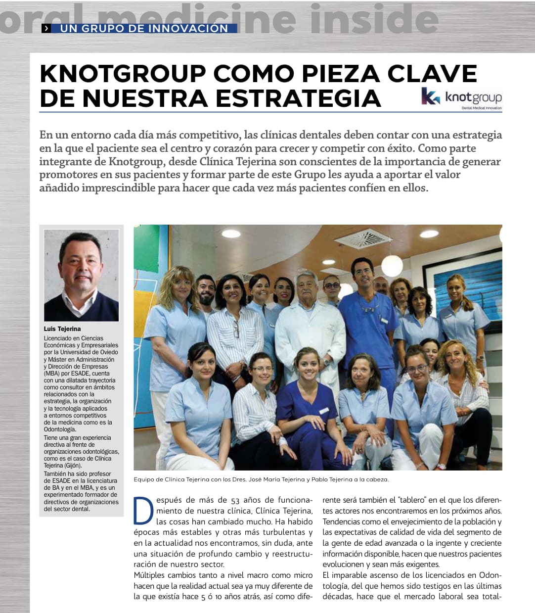Uno de los elementos fundamentales en esta transformación son los equipos que forman las clínicas, la consideración del trabajo en equipo como garantía de éxito.